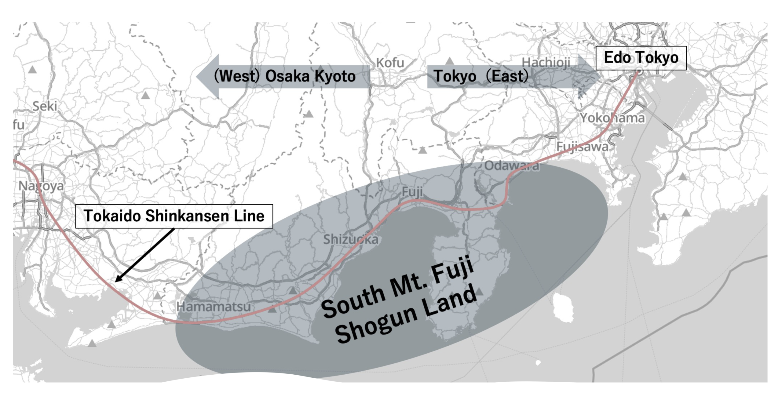 Relationship between Tokyo and the South Mt. Fuji region. Please get off the Shinkansen between Osaka or Kyoto and Tokyo