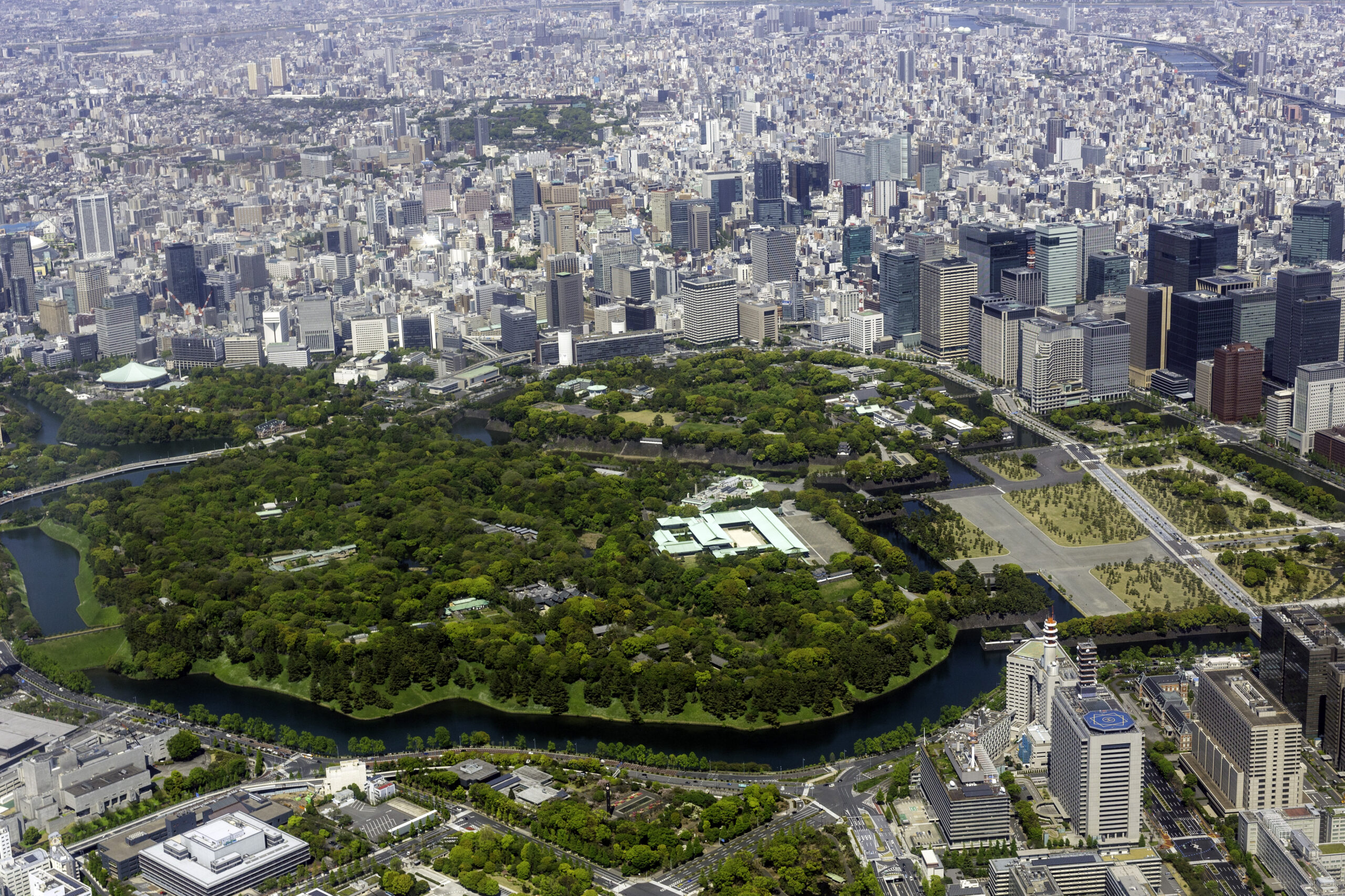 The Imperial Palace watches over visitors in front of Tokyo Station